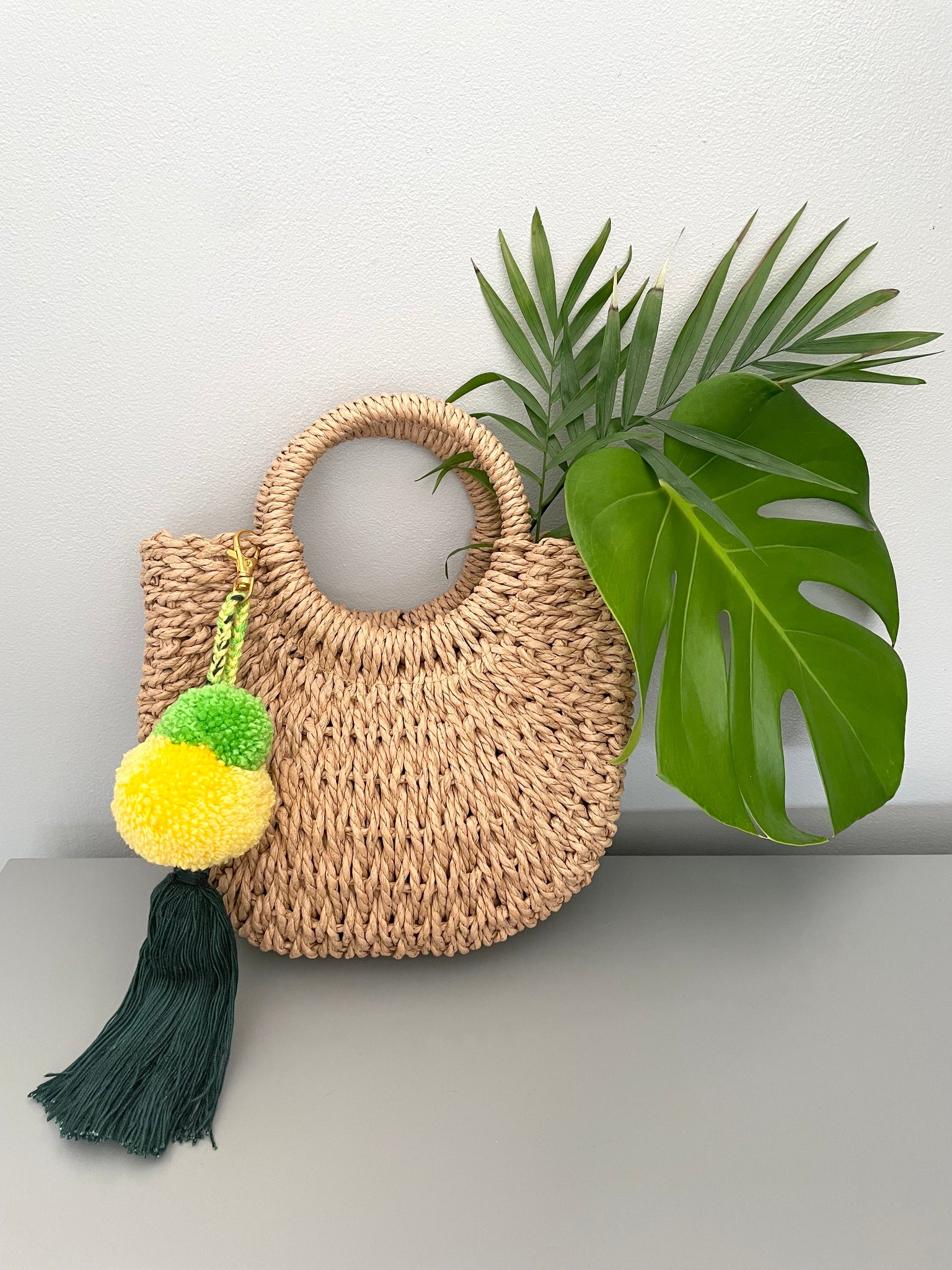 Green and Yellow Bag Charm | Colourful Pom Pom Keyring