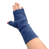 Fingerless denim blue fleece arm warmer gloves