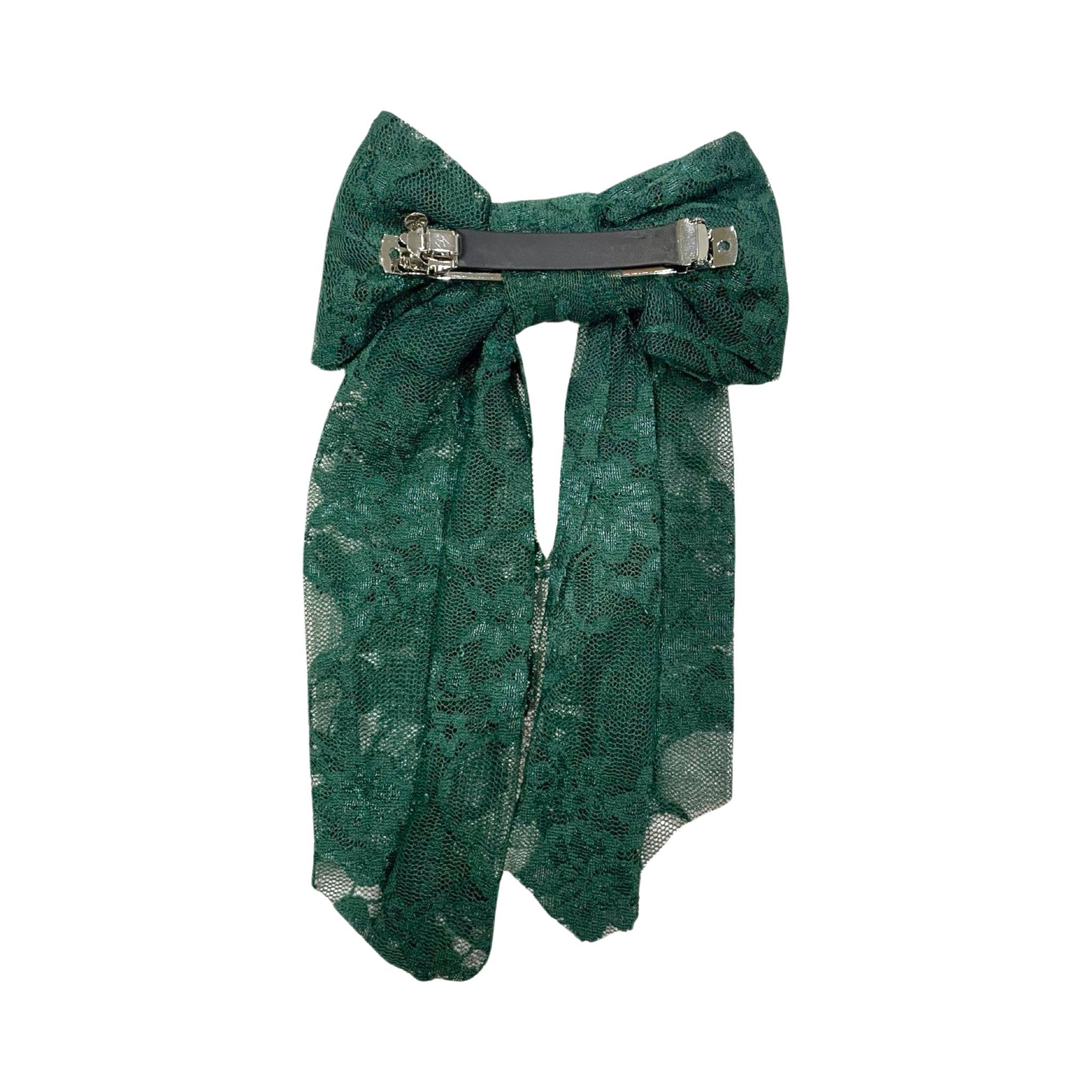 🖤 Elegant Green Lace Long Tail Hair Bow Clip  🎀