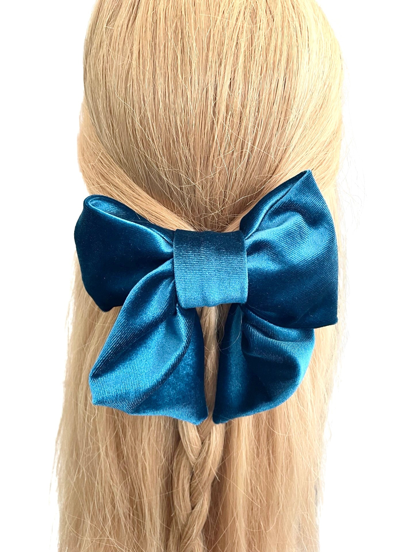 🖤 Elegant Petrol Blue Velvet Hair Bow Clip 🎀
