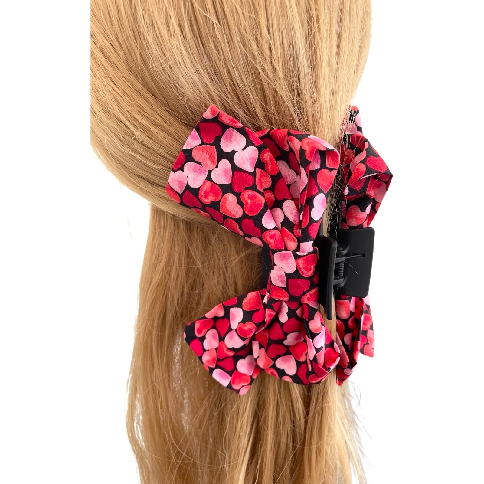 🎀 Elevate your hairstyle with our heart printed ribbon bow hair claw clip. This elegant and versatile hair accessory is perfect for weddings, birthdays, and other special occasions. Crafted with a classical Parisian flair, it adds a touch of class and glam to any ensemble. Whether you're a bride, a bridesmaid, or simply looking to elevate your everyday look, this hair claw is a must-have.