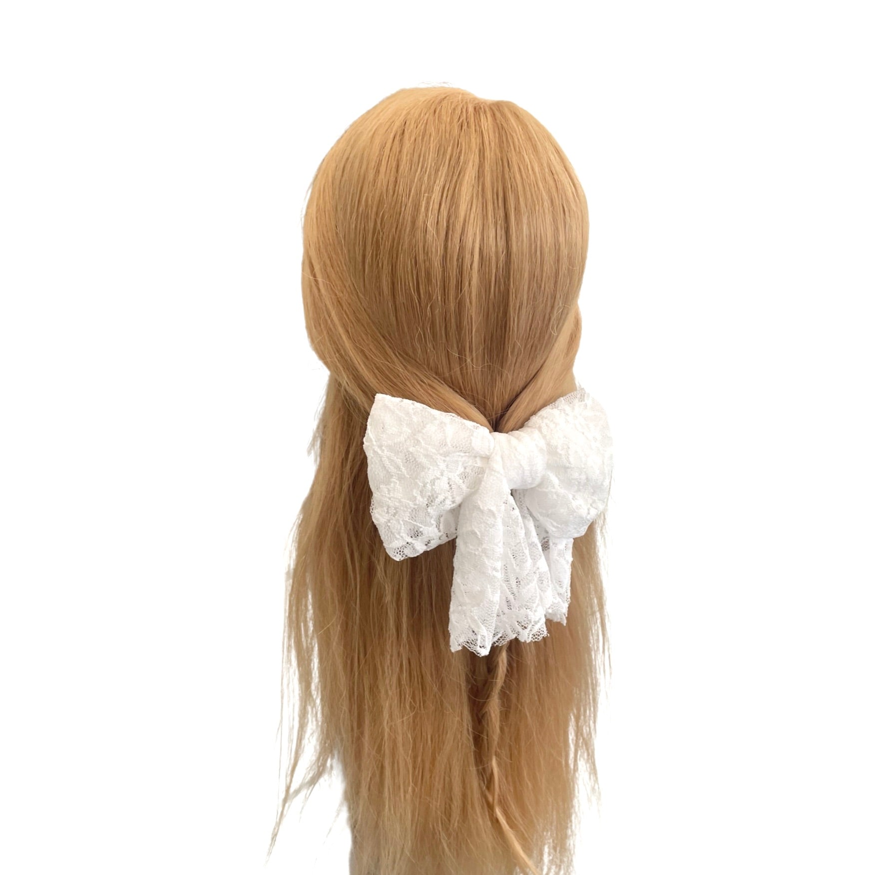 Versatile and easy to wear, our bridal lace hair bow complements a variety of hairstyles, whether you choose an updo, loose waves, or a classic bun. It securely fastens to your hair, allowing you to dance the night away without worrying about readjustments.