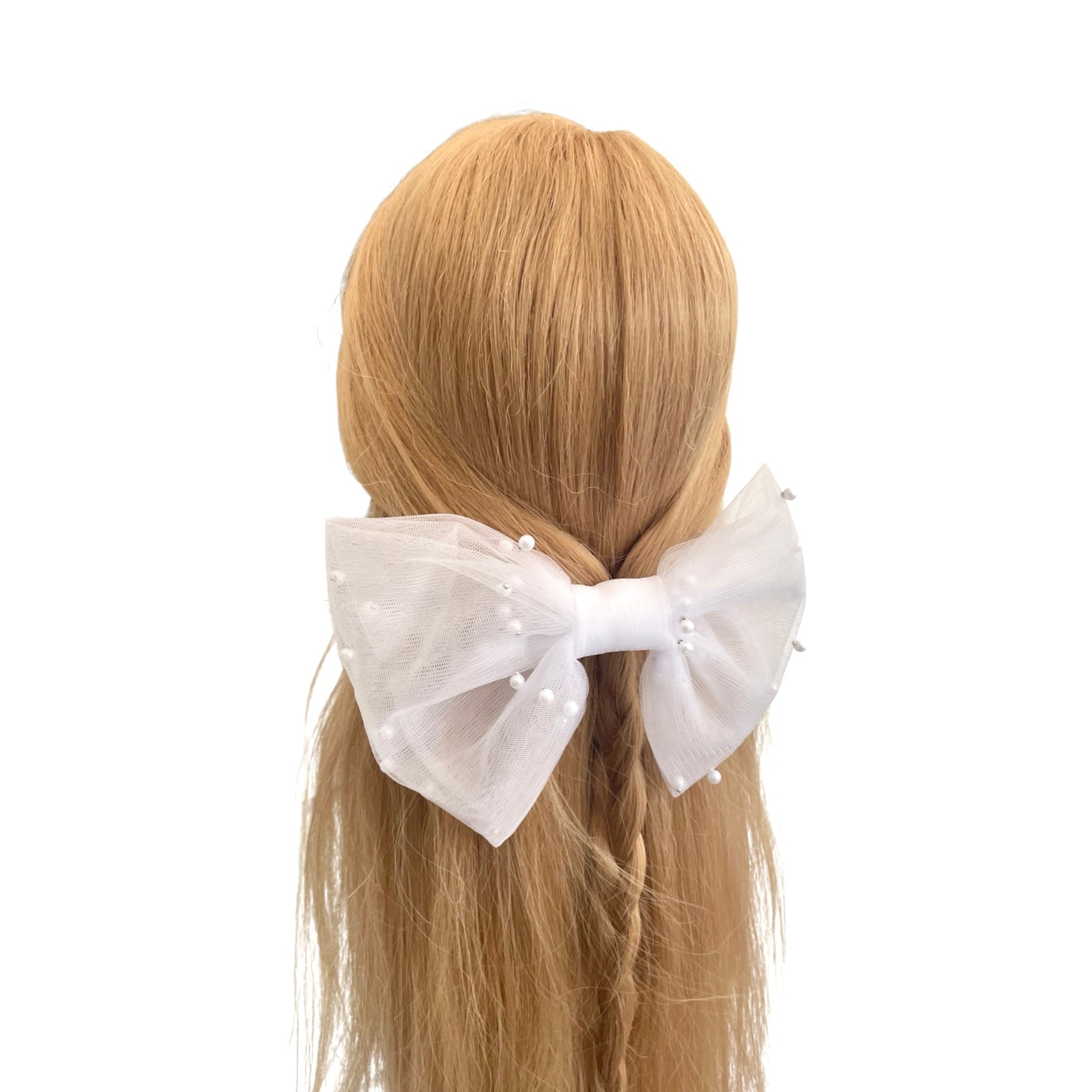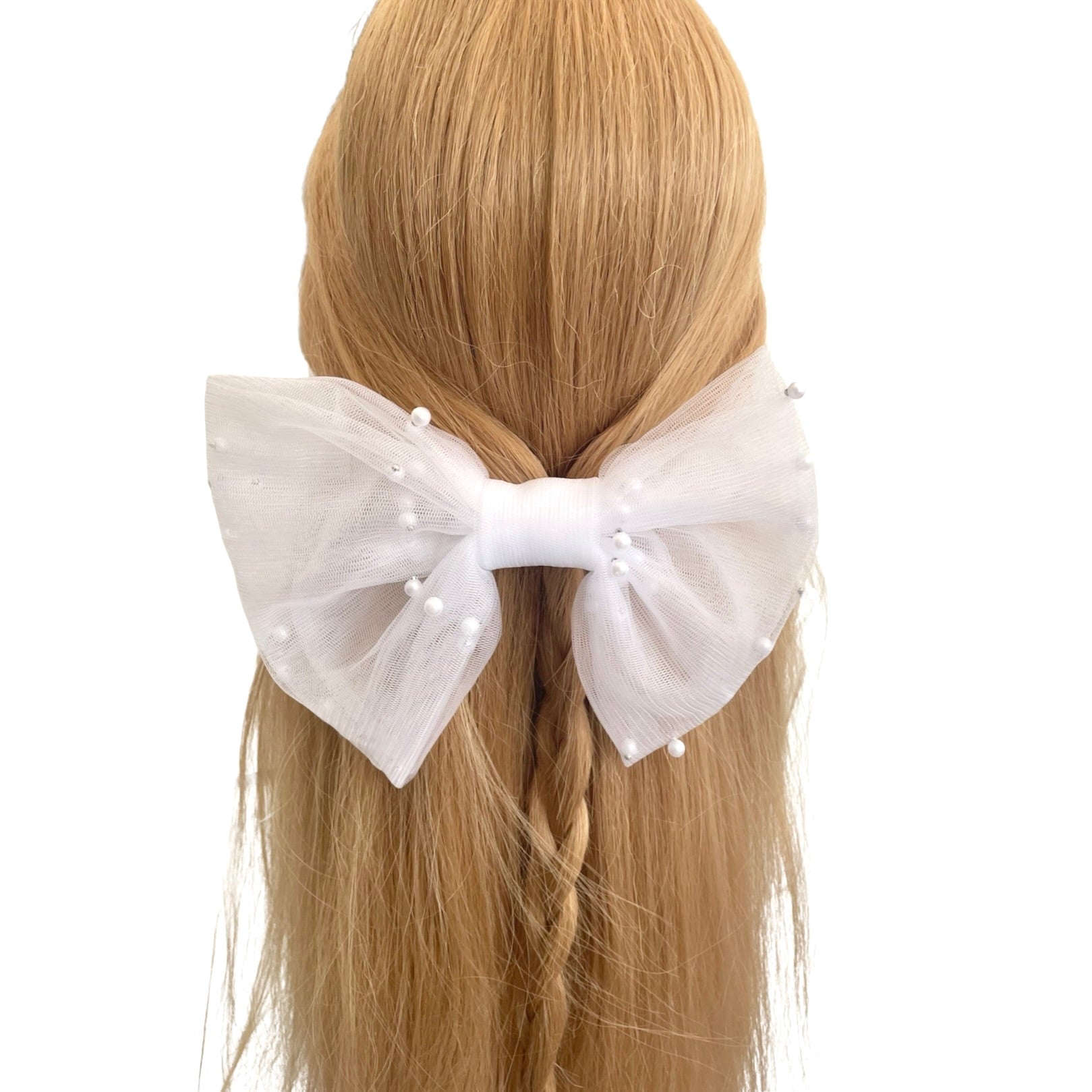 ♡ WHITE PEARL TULLE HAIR BOW