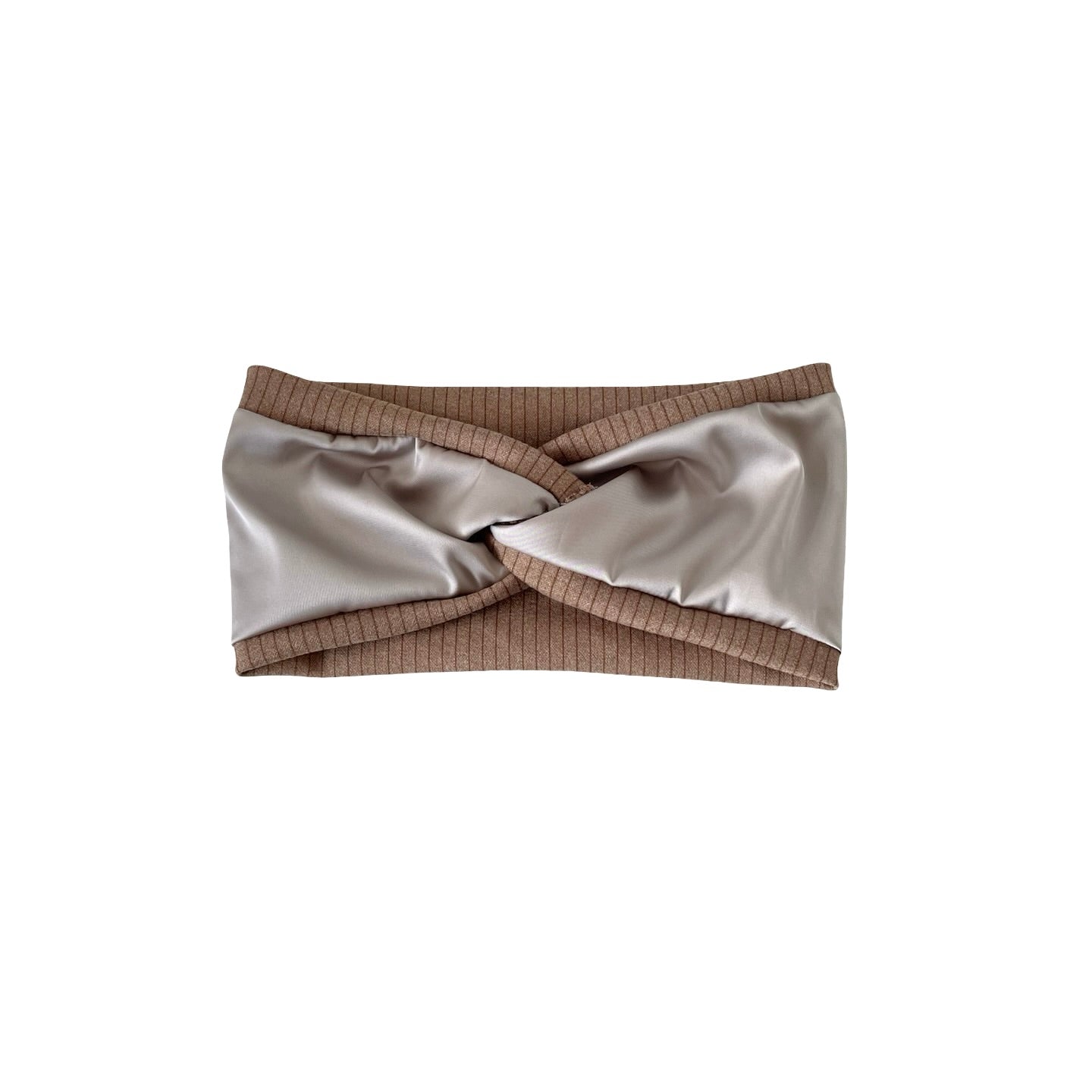 Handmade with love, these satin lined twist headbands are designed to be as beautiful as they are practical. The outer layer is made from ultra-soft, stretchy brushed rib jersey for a cosy and stylish look, while the inside is lined with smooth light taupe satin to help protect your hair from breakage and frizz.