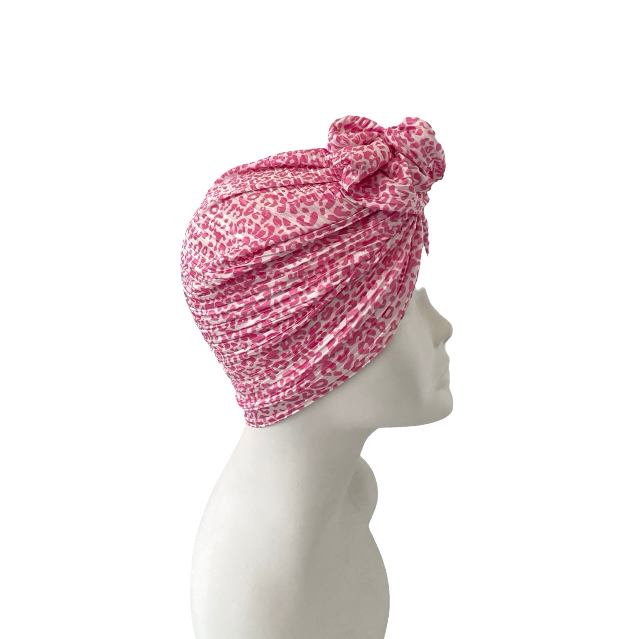 This prettied turban cap will fit a standard adult's head (21''-23'').