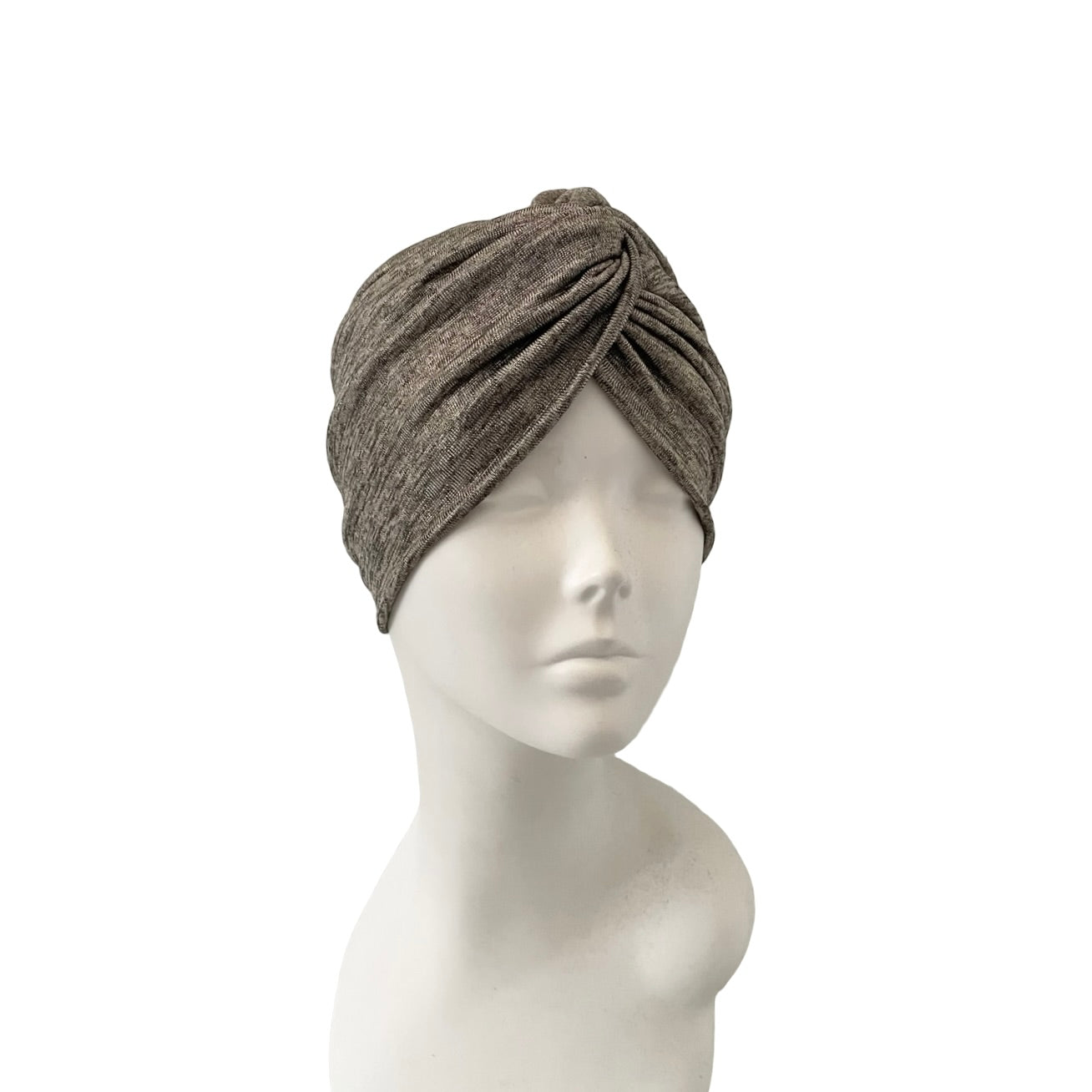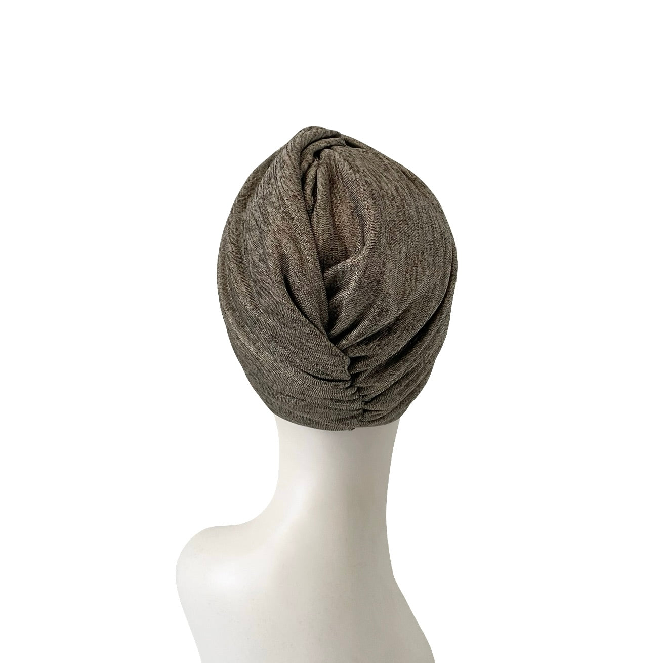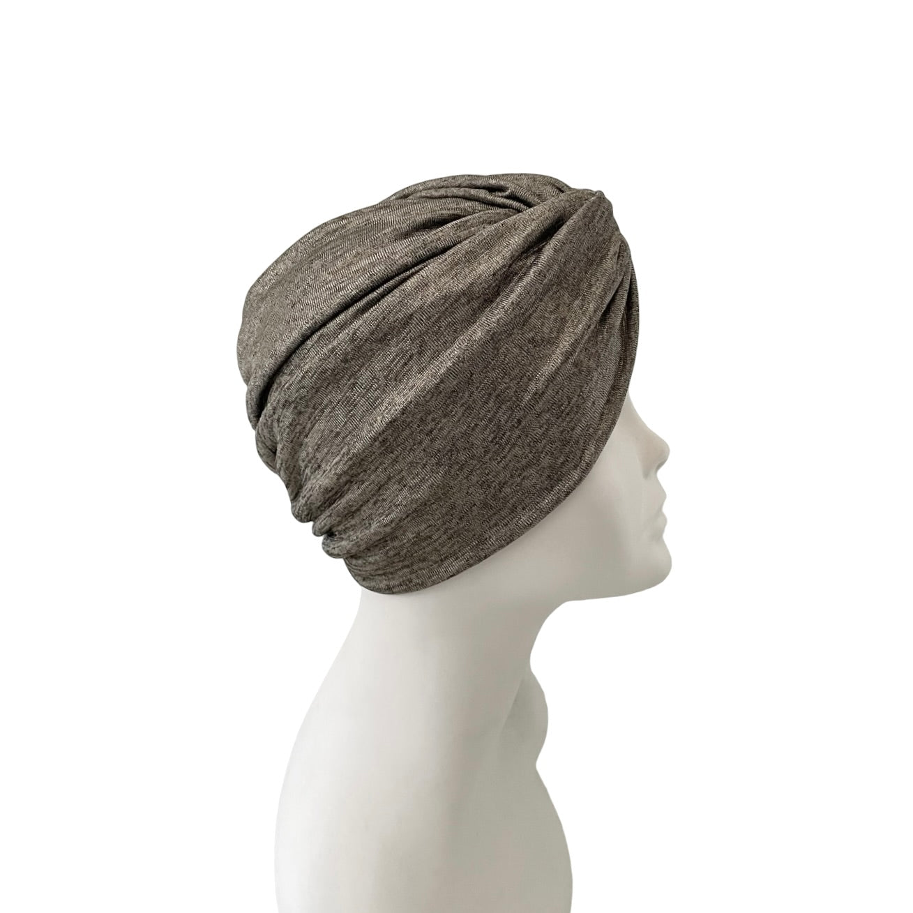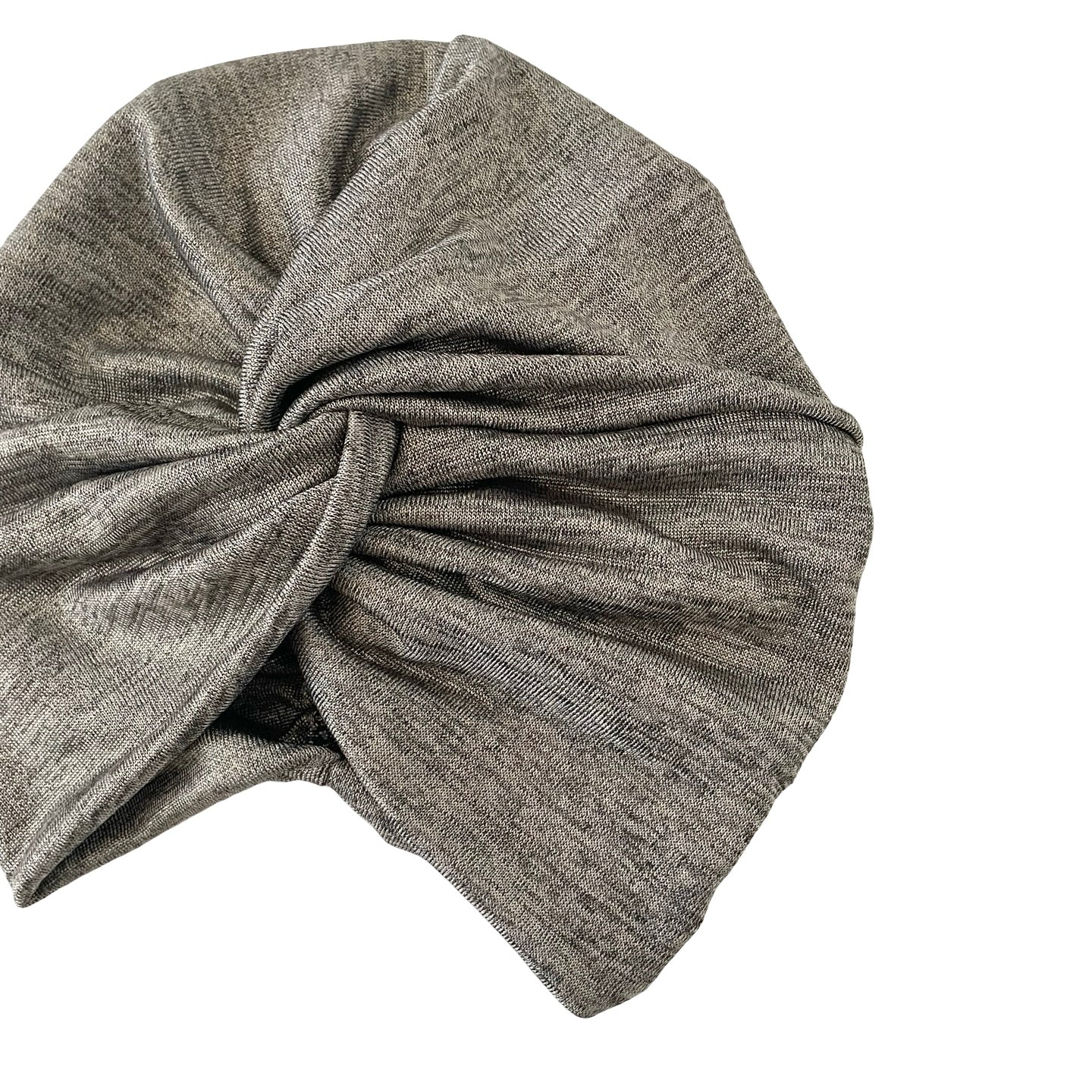 Bring some shimmer to your holiday season with this festive, sparkly turban hat, lovingly crafted from soft, metallic jersey fabrics that feel gentle against sensitive scalps. Designed with both elegance and comfort in mind, this holiday turban is perfect for women experiencing hair loss from chemotherapy, alopecia, or other medical conditions, as well as anyone who wants a stylish, cosy headwrap for winter celebrations.