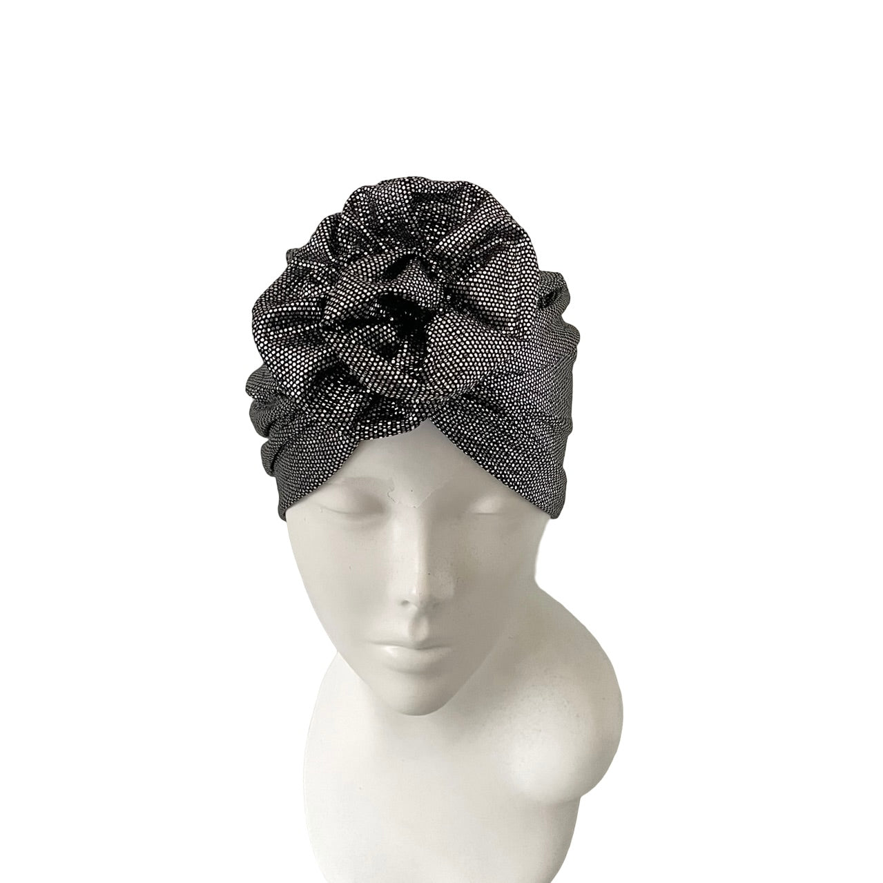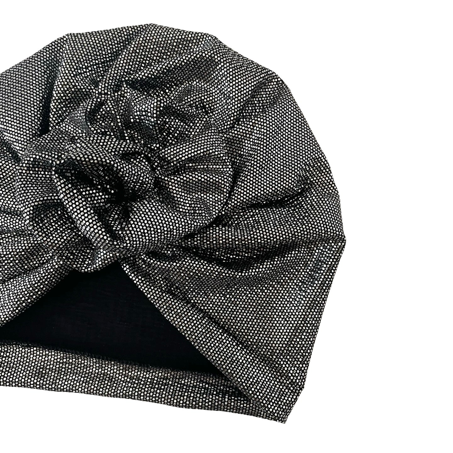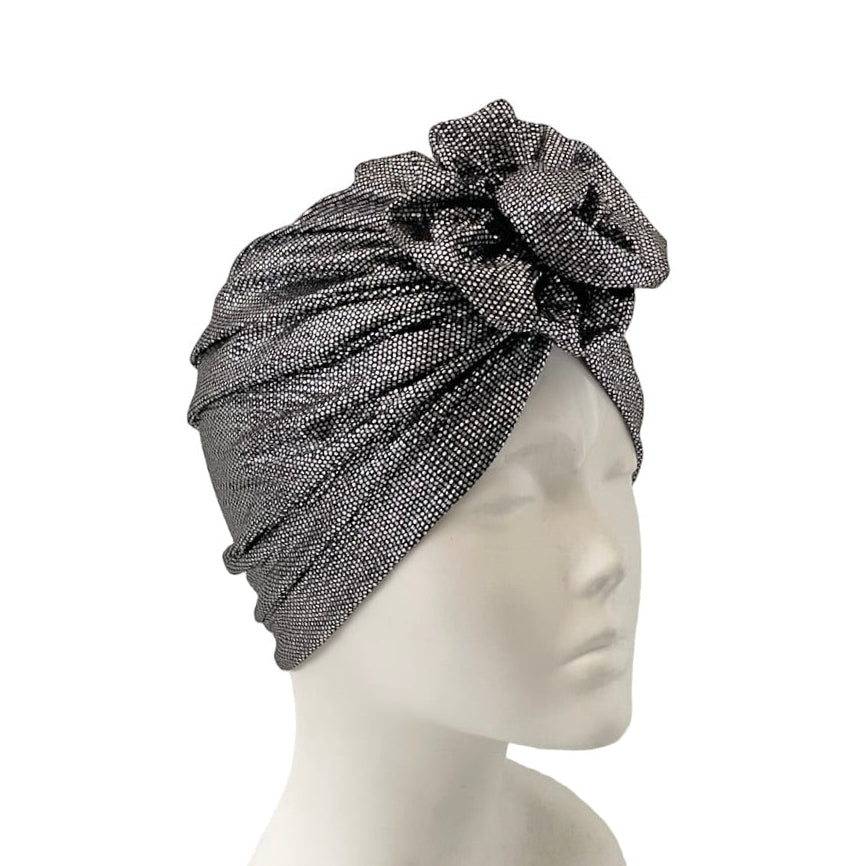 Black on Silver Stretch Turban Hat