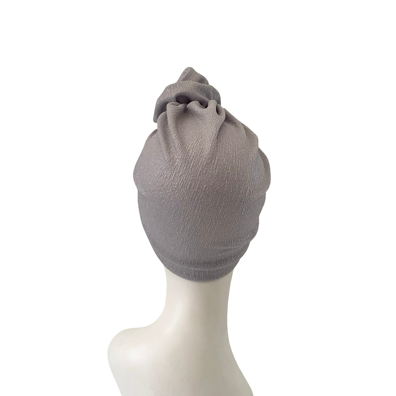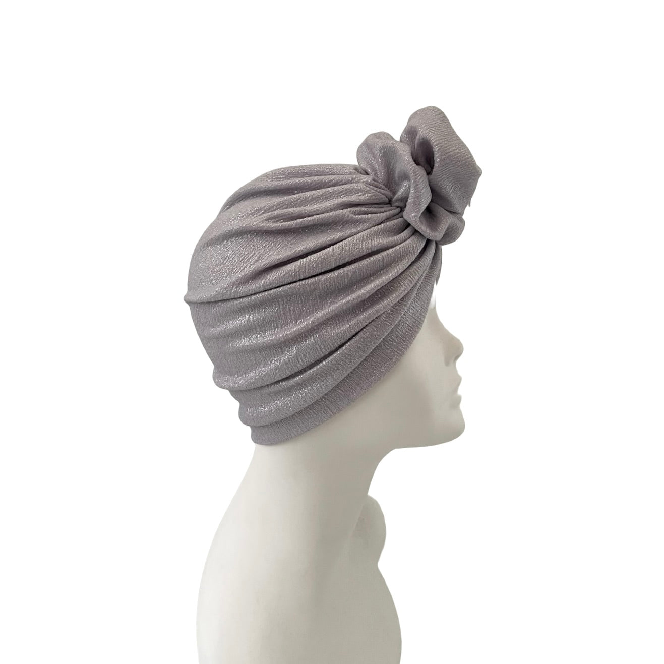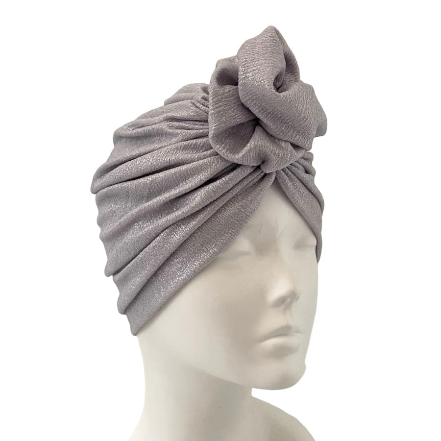 Bring some shimmer to your holiday season with this festive, sparkly turban hat, lovingly crafted from soft, metallic jersey fabrics that feel gentle against sensitive scalps. Designed with both elegance and comfort in mind, this holiday turban is perfect for women experiencing hair loss from chemotherapy, alopecia, or other medical conditions, as well as anyone who wants a stylish, cosy headwrap for winter celebrations.
