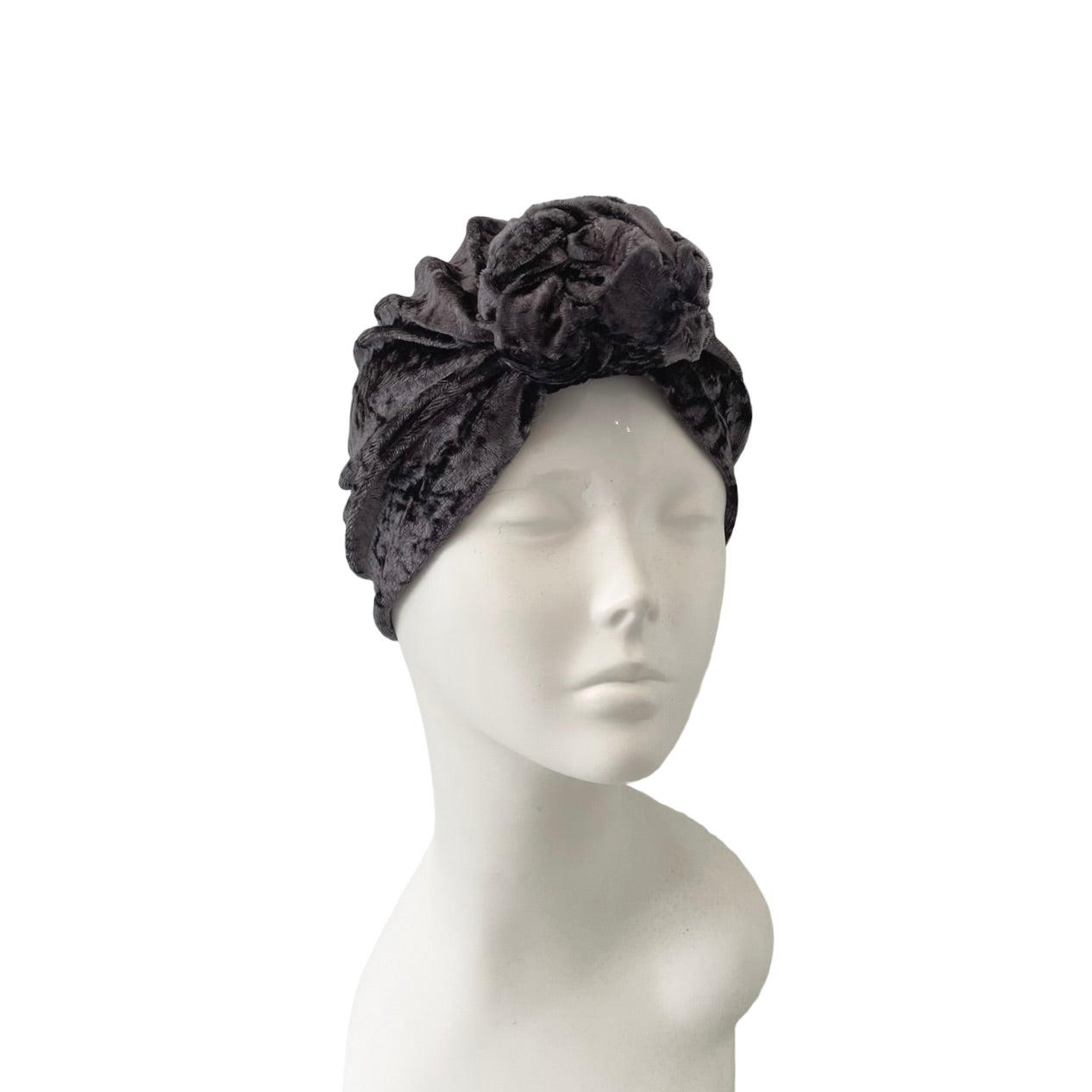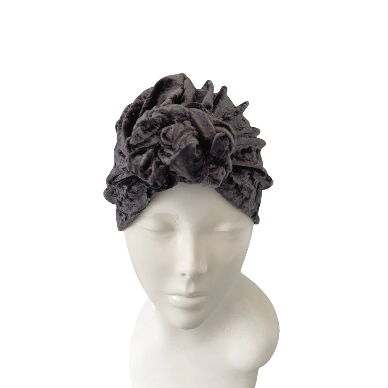 Grey velvet turban hat for women.