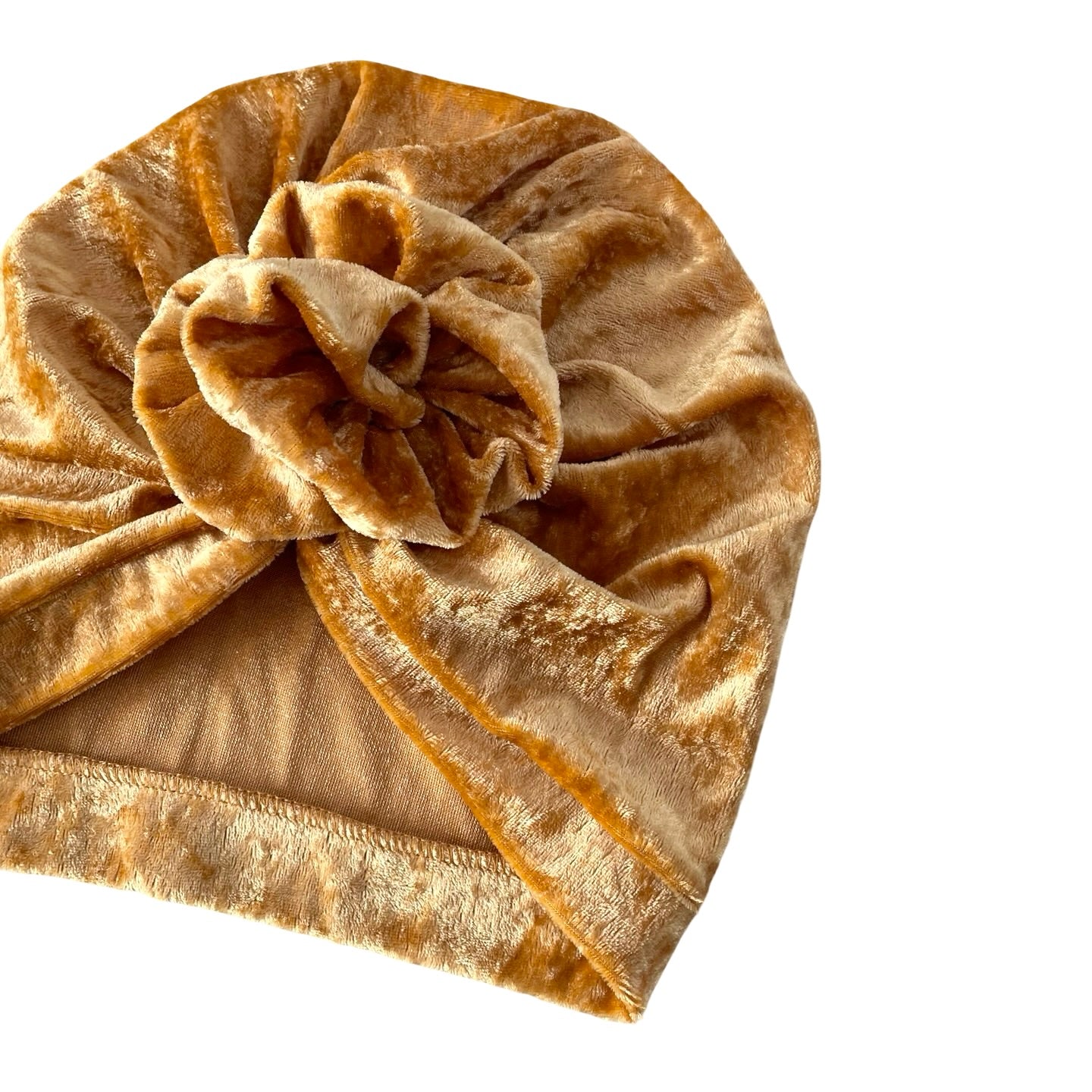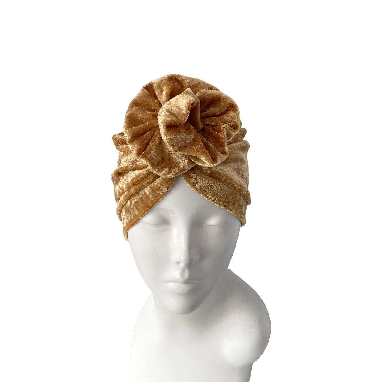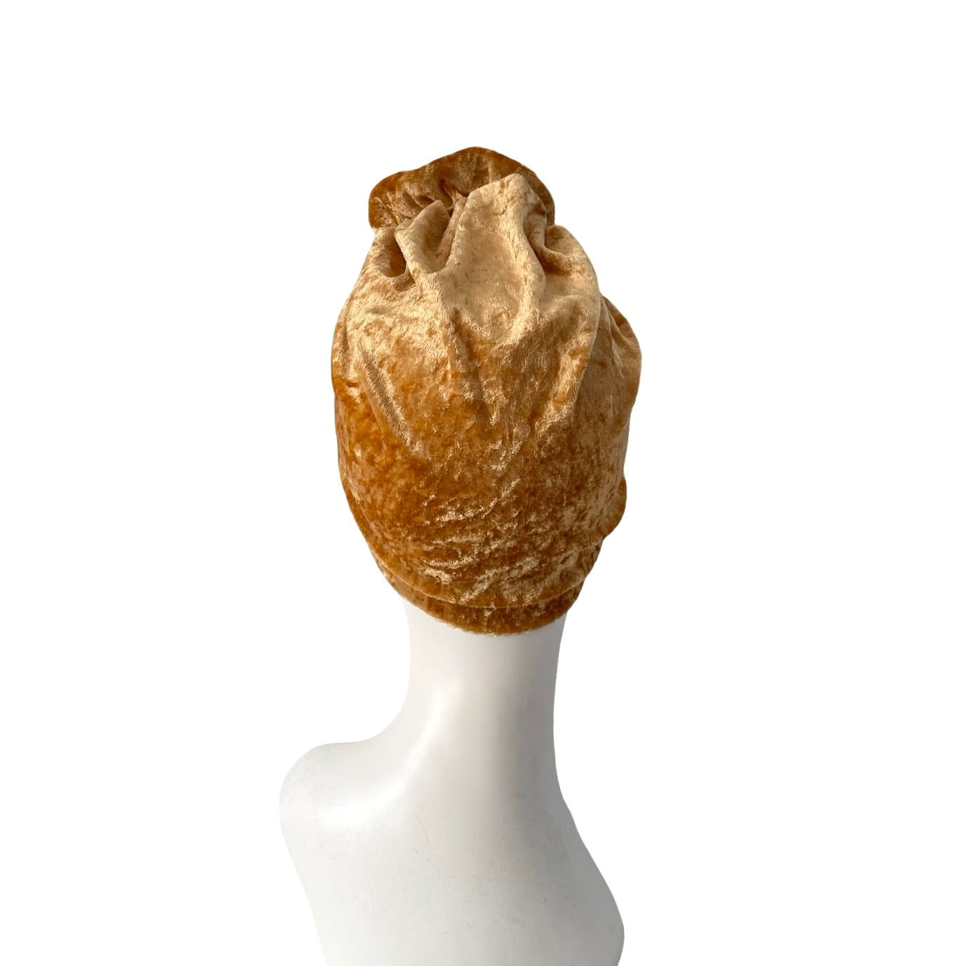 Mustard gold velvet turban hat for women.