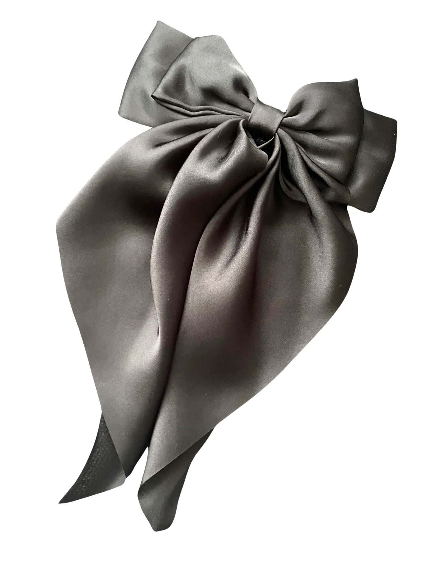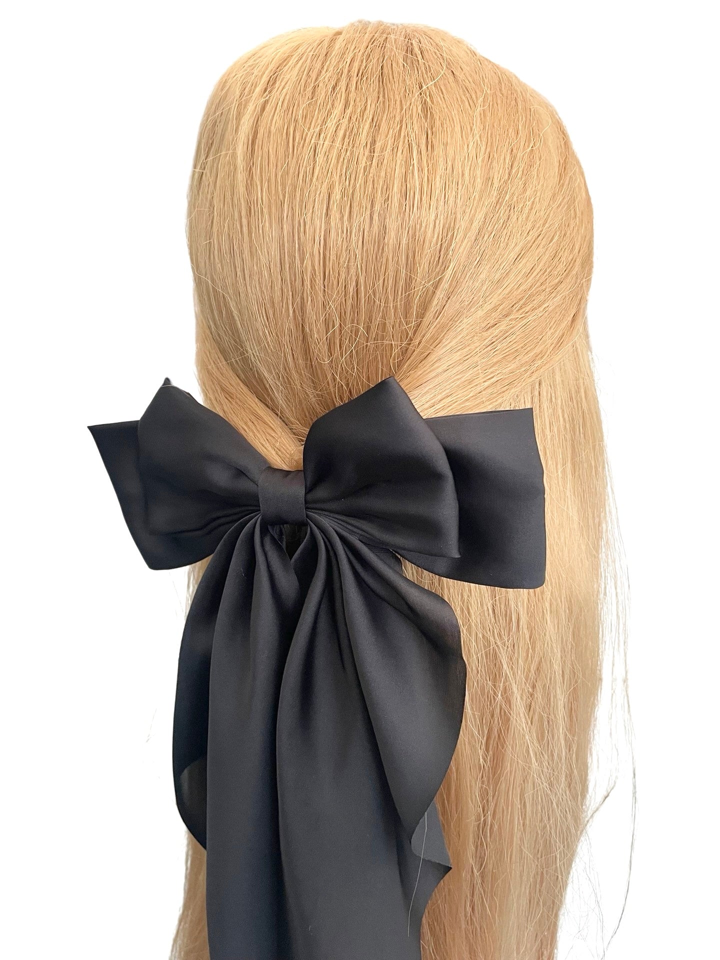🖤 Timelessly Chic Black Satin Long Tail Hair Bow 🎀