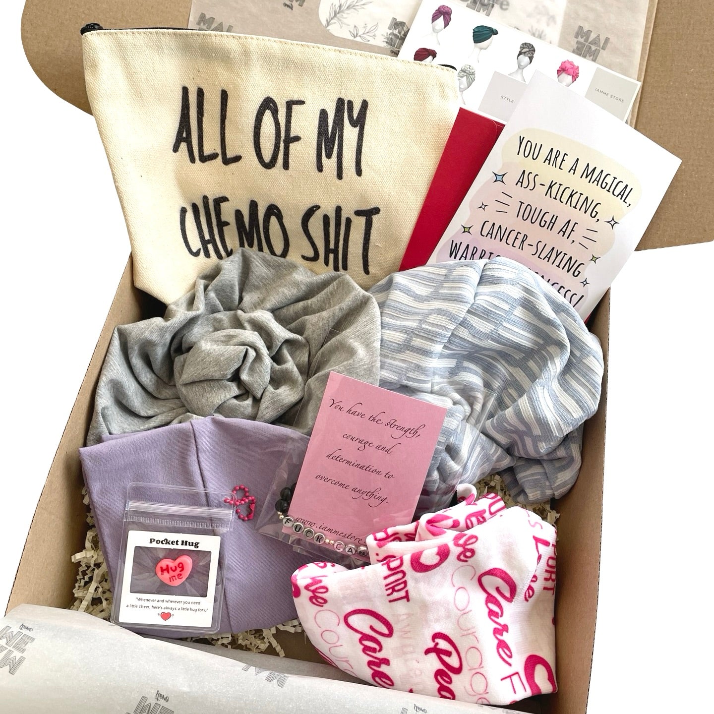 This handmade chemo gift box is thoughtfully curated to bring comfort and love to women going through chemotherapy. The perfect care package for cancer warriors or anyone fighting cancer.