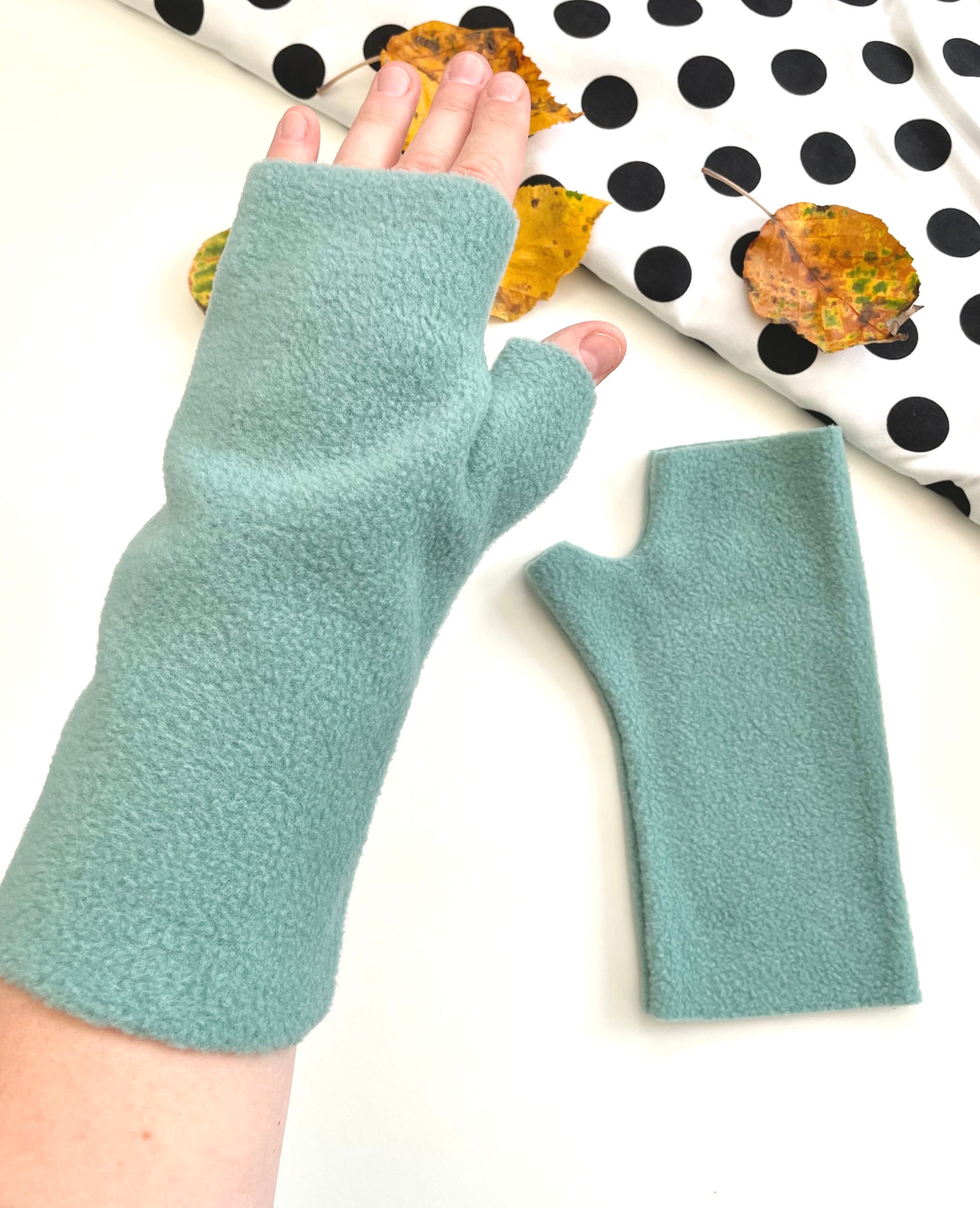 Duck egg fingerless arm warmer mittens