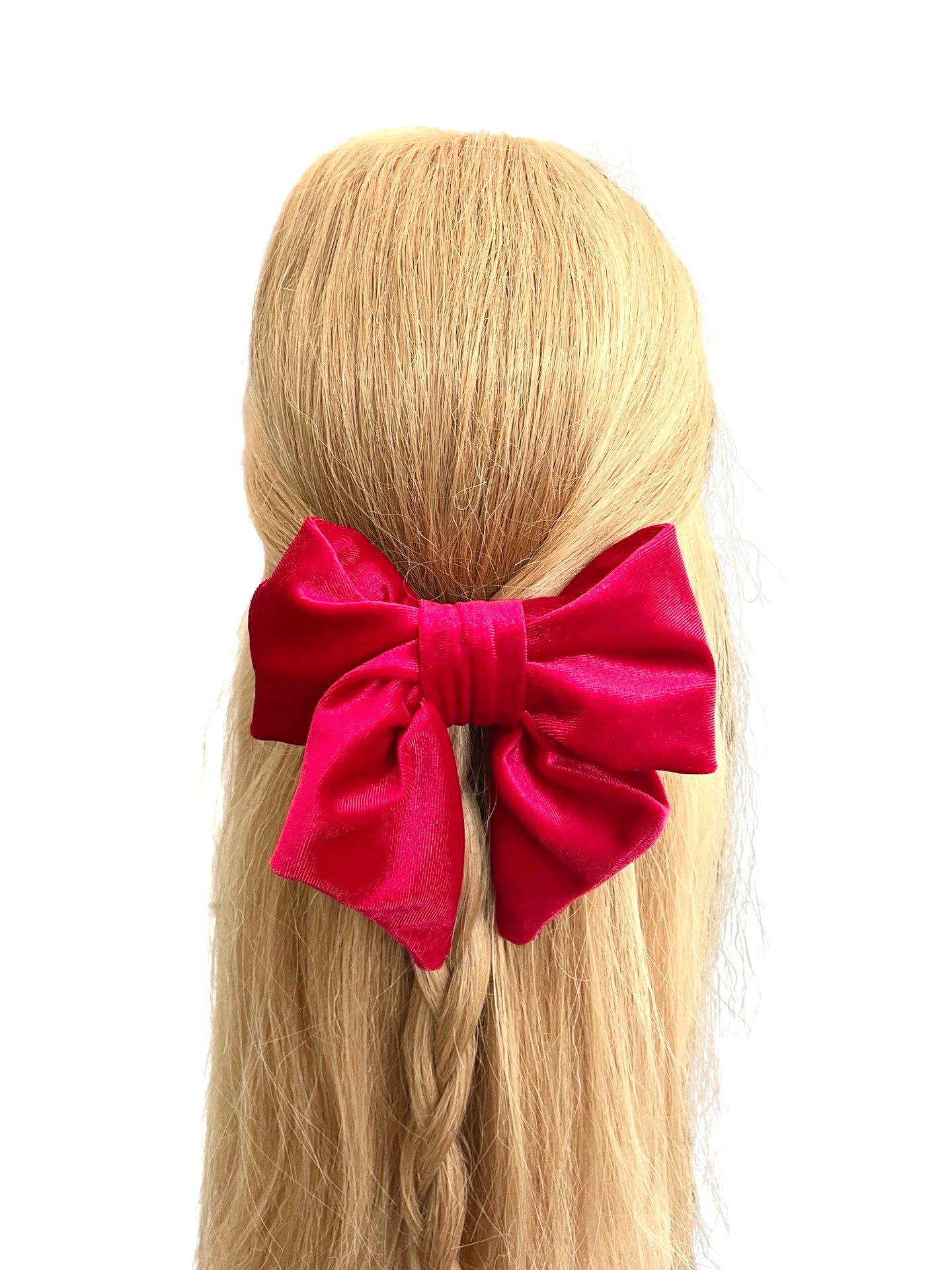 🖤 Elegant Red Velvet Hair Bow Clip 🎀